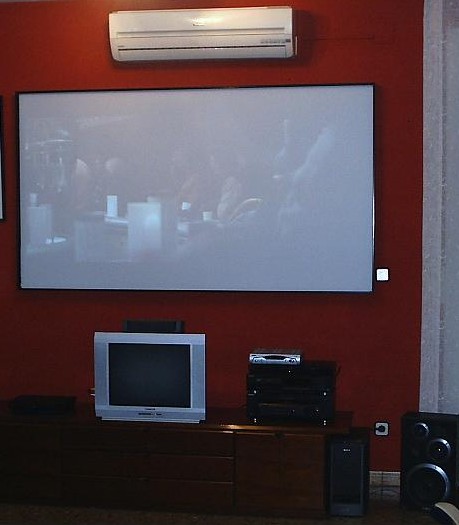 Estoy mirando de comprar una pantalla, porque hasta ahora he proyectado sobre la pared con el inconveniente de los blancos (el blanco, al moverse rápidamente, crea un "arcoiris" reflejado que acaba mareando).