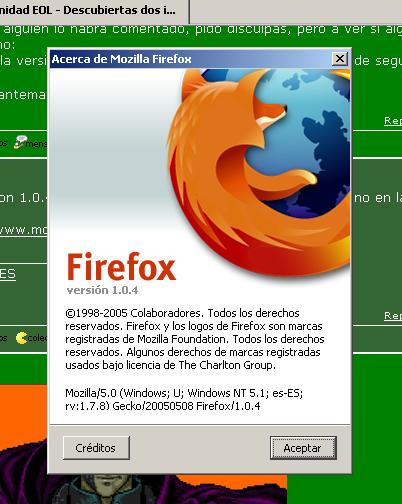 P.D.: Ah, y el tema de las extensiones APESTA. Muy bien que valen para añadir cosas, pero aporta inconsistencia. Ah, y tanto que dicen del firefox, menos rollo con los bugs y mas poner un método para no tener que actualizar borrando y bajando de nuevo.