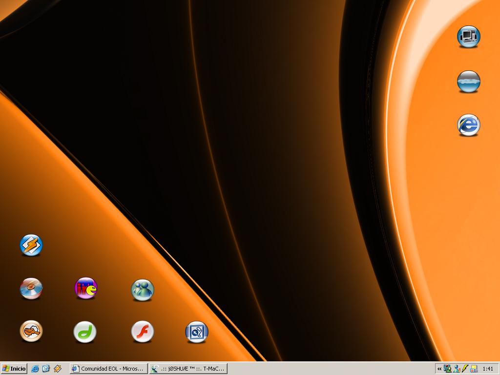 aki os dejo una imagen de tal como esta el escritorio, un fondo wapo, me he configurado el puntero, y esto ha sido el resultado, me faltan pekeños iconos, pero no pasa na