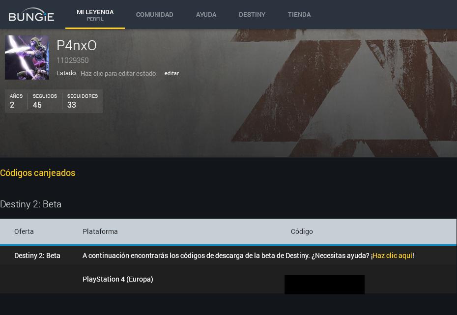 https://www.bungie.net/es/Profile/Codes/
