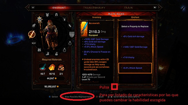 2- dependiendo la caracteristica a cambiar te dan unas opciones u otras, por ejemplo, si un objeto tiene detreza y X% de oro de los monstruos, destreza te dará unas opciones y el X% de oro te dará otras, todas acordes a las caracteristicas de la habilidad, Destreza = característica principal, X% de oro = característica secundaria.
