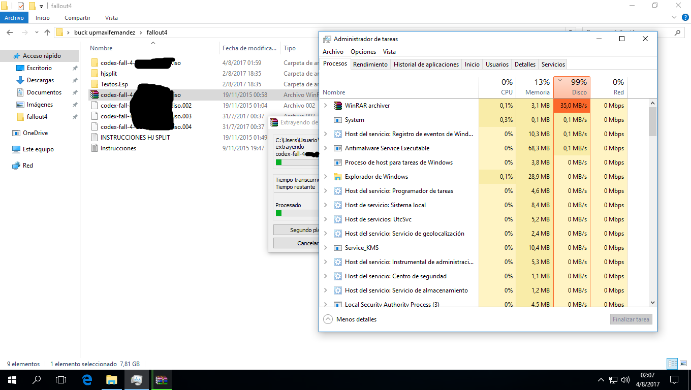 Lo ideal para trabajar en un pc, es tener el sistema en otro disco, preferiblemente un ssd, así no afecta apenas descomprimir o instalar muchos gigas.