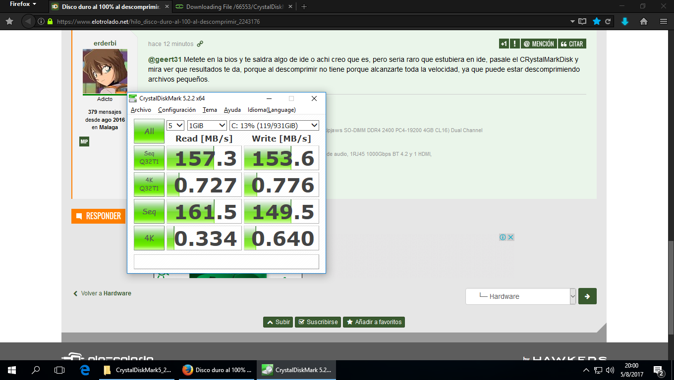 Pero como ya he dicho antes, eso que estás descomprimiendo en la foto, es un rar SIN compresion, los datos están en un rar, pero no hay compresion, se suele hacer con ficheros que ya están comprimidos y volver a hacerlo con rar, no supone ninguna mejora. En este caso da igual la cpu, la extracción del rar se hace a toda velocidad sin uso apreciable de la cpu.