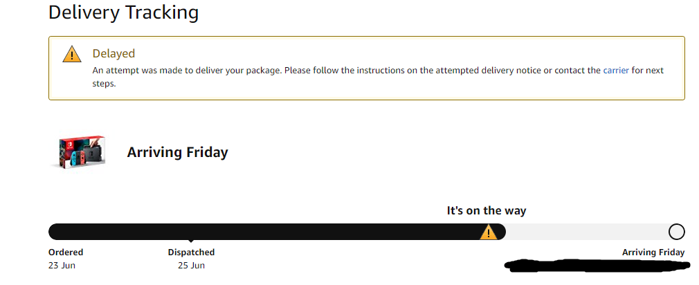 Switch comprada en amazon.co.uk el 24 en "casa". En realidad han hecho un intento de entrega y no estaba, así que hasta mañana no puedo pasar por delegación a recogerla, pero vaya, que ya están llegando