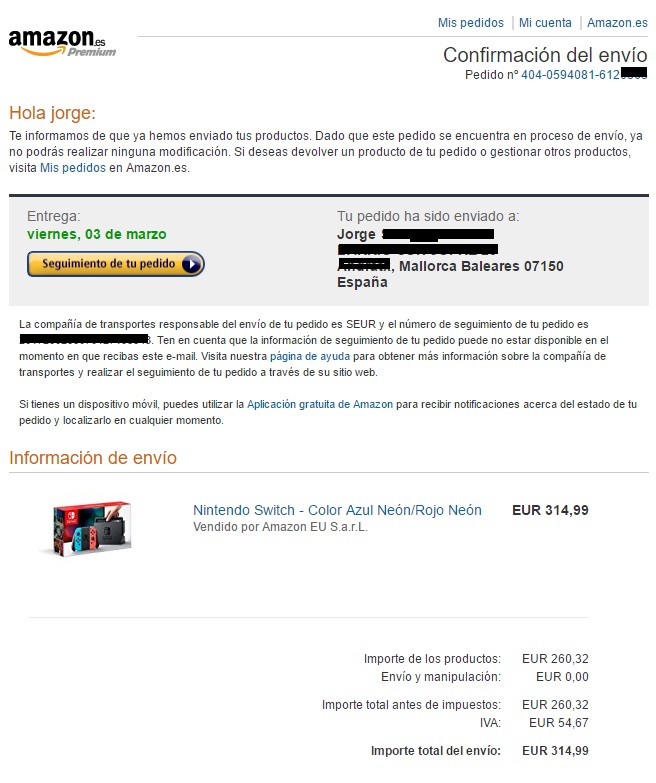 Yo voy a esperar al jueves que nos pongan el transportista. Hablaré con ellos para ver si me puedo acercar a la oficina o si me viene mejor que me la traigan. Si el jueves no pone fecha de entrega garantizada el viernes, cancelo y a las 9 estoy en el Alcampo/Game/Fnac/MM/Carrefour que tengo todo al lado. La única pena de esto sería perder el cómic del zelda