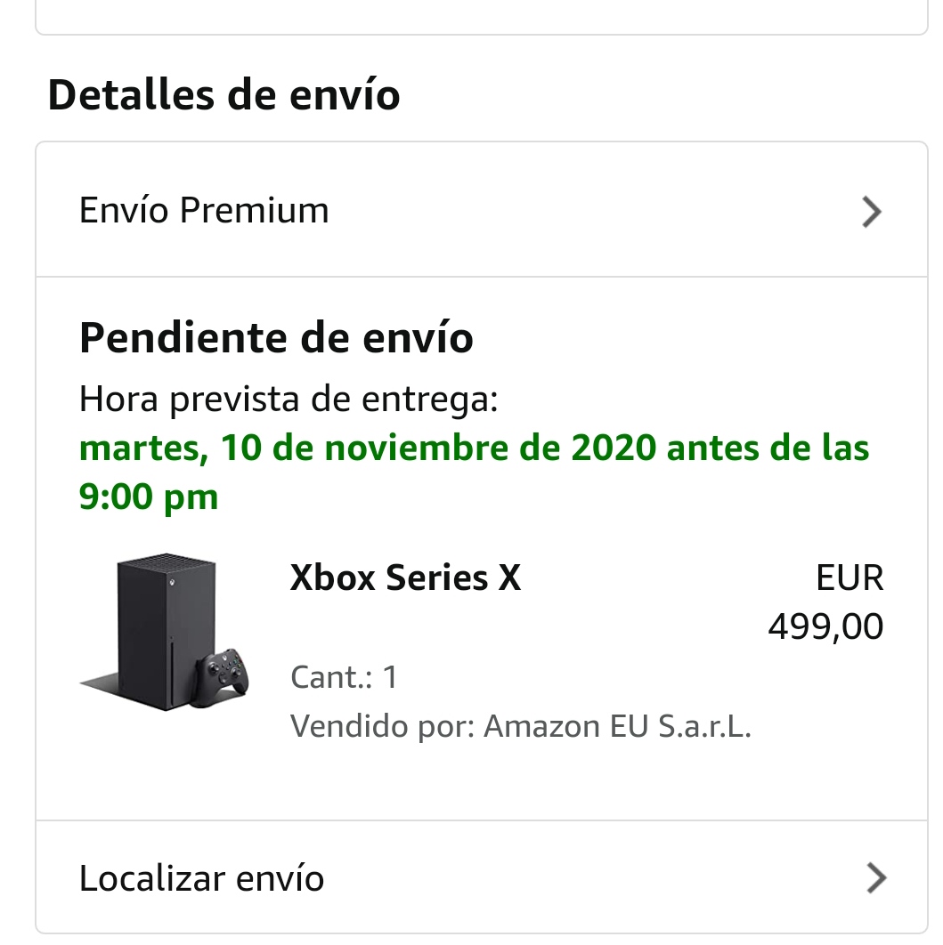 Otro con Amazon Prime al que le ha dejado cambiar tanto Xbox Series X como el kit de carga y juega con envio premium sin coste adicional. Todo me llega el 10 de noviembre (si no hay mas cambios) :)