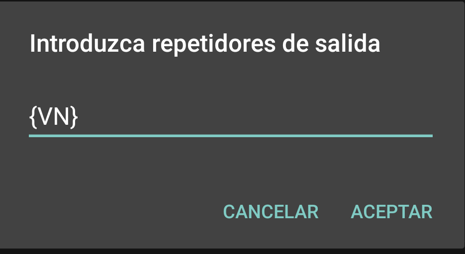 Has de ponerlo manualmente. En las opciones, nodos de salida escribes {VN}