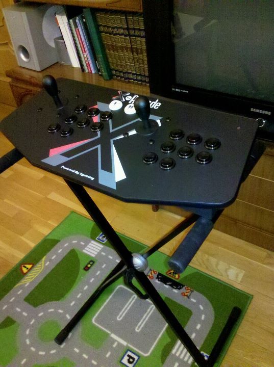 Arcade X Dual Stick Pro + Soporte de piano para tenerlo a la altura adecuada.