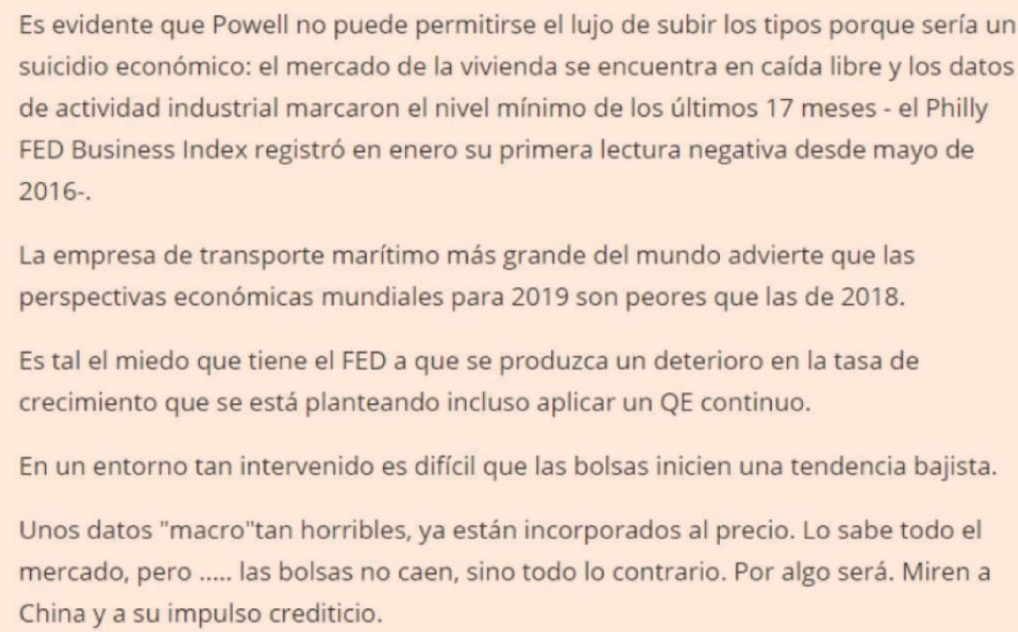 Shionides escribió:El último párrafo es una falacia, ironía... solo se puede actuar tal y como actúan las inmobiliarias cuando el objeto de especulación es un bien de primera necesidad irremplazable, con una disponibilidad limitada. Por eso es necesario aumentar la regulación sobre ese sector, que en el punto actual genera escasas rentas productivas si lo comparamos con el impacto nocivo que provoca en el gran consumo. De lo contrario, continuaremos sufriendo las inestabilidades económicas cíclicas que produce esta dinámica especulativa.