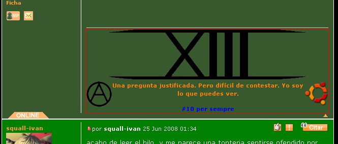 kurras escribió:Segun la normativa sobre la utilizacion de firmas no debe ofender o molestar a los demás usuarios. Sin entrar a valorar la firma en concreto, si a alguien le ha molestado hay que ceder.. Tambien desconozco si fueron muchos los reportes o no.