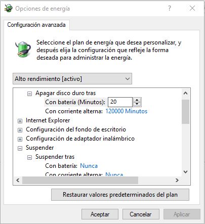 Ñomo escribió:Las opciones de energía, en particular la de desconexión del disco duro, no se aplica cuando el disco está trabajando.