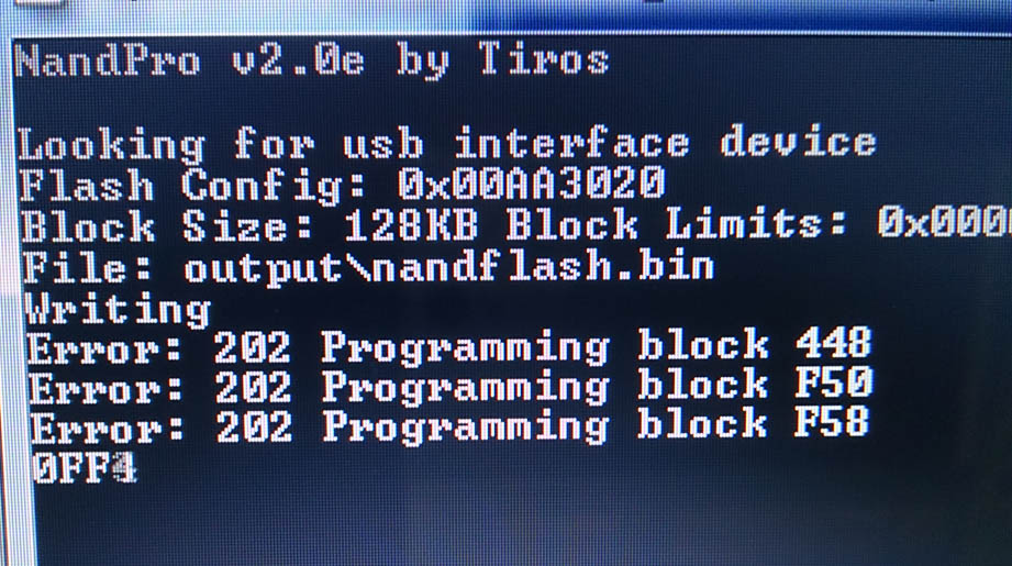 Al realizar el bakup de la NAND hubo bad blocks que les remapeo el autogg y me dieron ok.