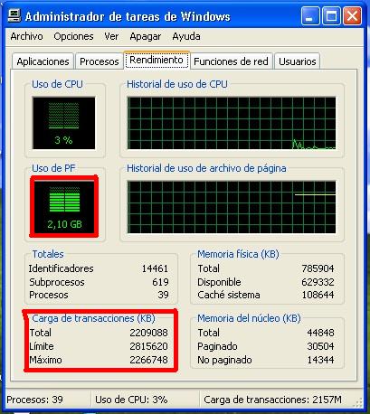 Pues a ver resulta que he dejado el Pc encendido desde las 8 mas o menos, y al llegar ahora e iniciar sesion, me pone que me estoy kedando sin memoria virtual, entonces miro en el administrador de tareas, y veo ke el archivo de paginación ocupa 2.10Gb, y aumentando. ¿Es esto normal en tan poco tiempo? nunca me habia pasado.