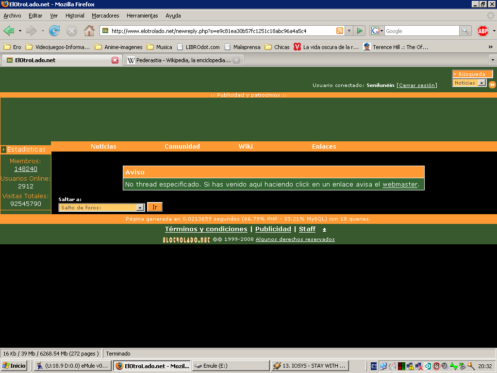"No thread especificado. Si has venido aquí haciendo click en un enlace avisa el webmaster."