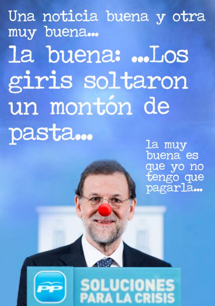 Cuarto, el gobierno se niega a utilizar la palabra rescate y habla de “ayudas” y “préstamo en condiciones favorables”. Sería importante que el gobierno dejara de jugar con los nombres para esconder la realidad (un fenómeno conocido como “Zapaterizar” la realidad). Señores ministros: ¡esto es un rescate en toda regla! Ustedes reciben una ayuda en forma de crédito en condiciones favorables (y la diferencia entre esas condiciones favorables y las que obtendrían ustedes en el mercado son sufragadas por los contribuyentes alemanes) y a cambio, se comprometen ustedes a seguir una serie de normas dictadas por los socios europeos. Eso es lo que vulgarmente se conoce con el nombre de... ¿RESCATE? La irritación con la que De Guindos contestó a algunas preguntas de periodistas podrían ser el fruto del cansancio y de la tensión de los últimos días... pero sus patéticos intentos de esconder la realidad repitiendo una y otra vez que no estábamos ante un rescate no hacen más que minar la confianza de los ciudadanos. No queremos un médico que nos esconde la verdad. Queremos un médico que nos explica el diagnóstico de la grave enfermedad y nos explica qué tenemos que hacer para curarnos.(*)