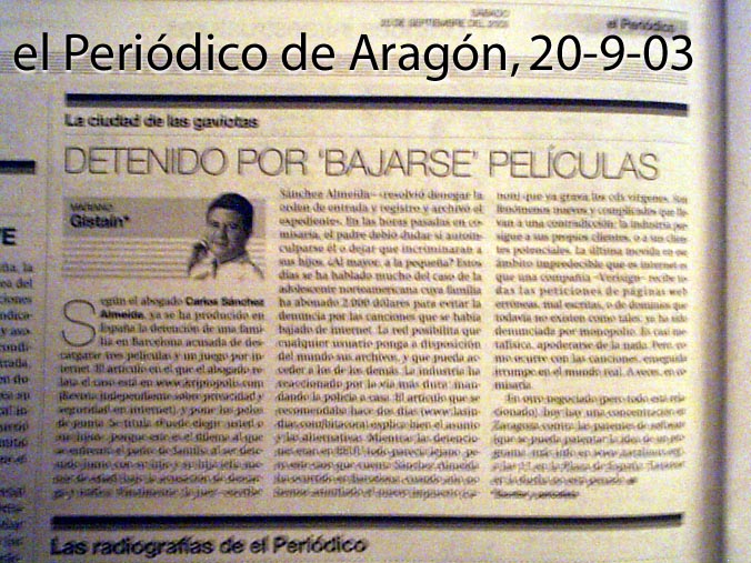 ¿Os créeis que ADESE movilizaría un juzgado, abogados y policía por un juego de PC descargado? O ahí había algo más (tráfico ilegal de software o de películas) o es una noticia tramposa. Eso no hay quién se lo crea. ¿Cómo van a localizar a alguien y ordenar su detención por tener una película copiada? Entonces estaríamos los 40 millones de españoles en la cárcel. Ya basta de tomarnos el pelo tanto de un lado (Ribas, aunque no tiene nada que ver con esto) como del otro (Almeida). A mí me da que los dos buscan lo mismo, dinero fácil.