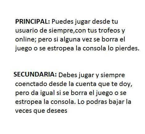 Pues en la principal puedes jugar con la tuya pero si pierdes el juego adiós, y en la secundaria solo puedes jugar con la de descarga (algunos juegos permiten cambiar de usuario una vez dentro) y puedes descargar el juego tantas veces como quieras