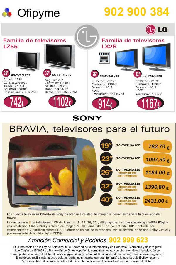 De todas formas, la diferencia de precio sigue siendo grande entre los televisores tradicionales CRT y los TFT, por ejemplo, un televisor de 32” de pantalla plana panorámica y 100Hz de JVC cuesta unos 800€ frente a los casi 3.000 que cuesta su versión equivalente TFT (aunque tiene más prestaciones). En otras firmas los TFT cuestan el doble que los CRT, pero de cualquier manera hay que pensárselo bien, la estética, el peso, las dimensiones de profundidad son argumentos, pero cada cual tiene que valorar su caso para ver si le compensa.