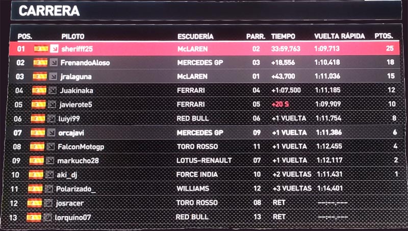 P.D: Editado y subida la clasificación en el apartado de clasificación. Está pendiente de aprobación debido al incidente que nos cuenta nuestro amigo luiyicadiz99. Él nos comenta una cosa y la PS3 nos muestra otra, así que habrá que interrogar a los implicados.