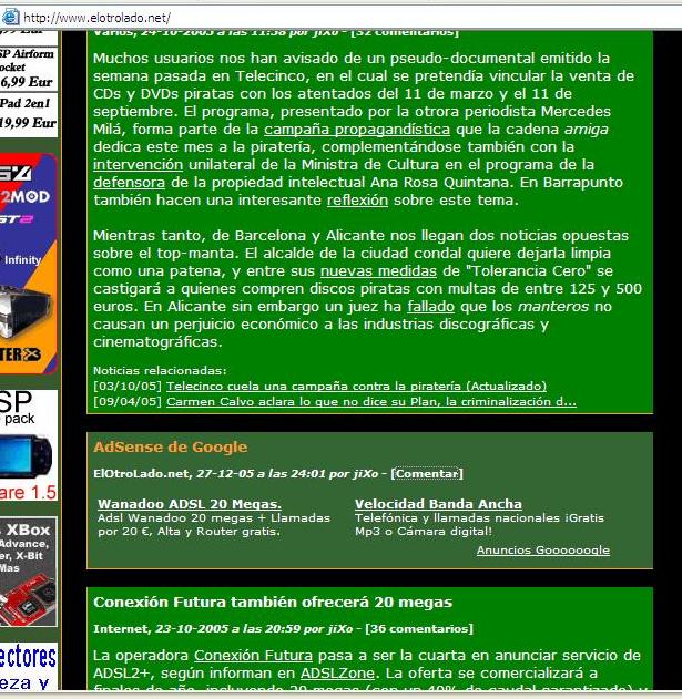 simplemente inquietante, Jixo posteara una noticia sobre google adsense el 27-12-2005 a las 24:01 minutos...