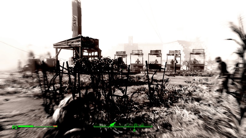 Pensé, quizás siempre ha sido así y no me había fijado... la verdad que esa pantalla nunca ha tenido una nitidez absoluta. La cosa es que entro en mi partida y en Sanctuary veo a los colonos lejanos y las paredes/edificios lejanos con ésta misma sensación, con falta de nitidez, borrosos... Tengo un foco a unos 100m aprox y si ando hacia atrás desaparece, lo apunto con un rifle con mira telescópica y vuelve a aparecer totalmente nítido.