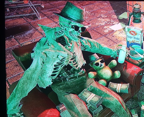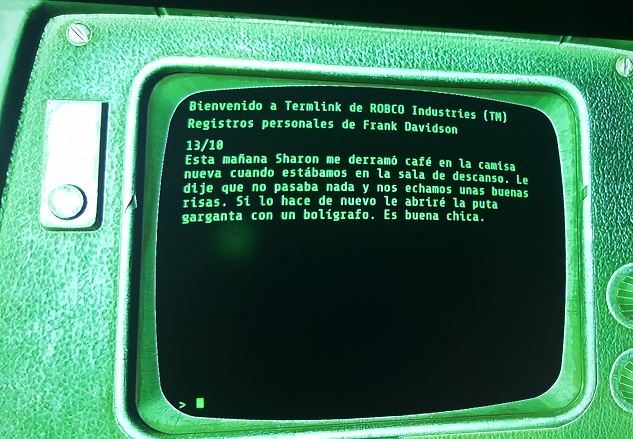 Acabo de pasarme la secundaria esa de limpiar de saqueadores la fábrica Corvega y no sé si me cuadró un buen momento meteorológico pero acabo de flipar, qué espectáculo visual. Una vez sales a la azotea estás entre típicos tubos de fábrica química, la luz colándose através, la niebla espesa, tiros, saqueadores, subiendo a las torres.