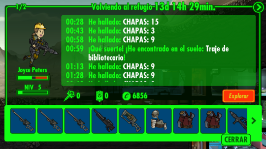 iloveqoob escribió:Yo llevo ya un montón de horas, tengo 80 moradores (quiero ir poco antes poco) y 5 con todos los stats al máximo, 90000 monedas y un montón de armas entre 15 y 25 de daño, pero al ayer por la noche al abrirlo se cerraba antes de poder darle a entrar al refugio xxx y no tengo manera de abrirlo, no reiniciando el móvil ni nada ¿alguna solución?