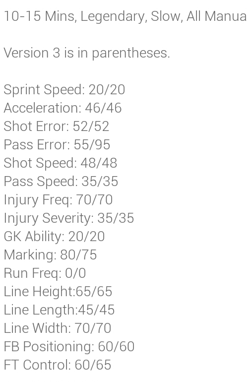 Barrakuda83 escribió:Ayer jugando offline en manual modo carrera empecé a tocar sliders y bueno me di cuenta de que subiendo el fallo en el pase de la cpu a 90 y el mio a 58 el juego para mi gana mucho en el sentido de que la cpu no juega hacer paredes en la frontal pq tienen que controlar para asegurar pase lo que hace el juego más pausado y optan por jugar más en banda y lanzar a la primera que tengan oportunidad.... No se si alguno más lo han probado o son flipadas mias...