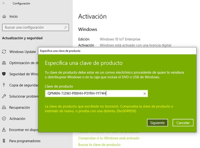 El principal temor que tengo es que tampoco funcione la key que compre, así que estoy pensando en formatear el equipo y volver a instalar Windows 10 IoT Enterprise 64-bit. En este sentido ¿cuál era la mejor opción? ¿Bajar directamente la versión IoT de prueba en inglés y descargar luego el paquete de idioma castellano o bajar la LTS (sin IoT) y luego elegir la IoT durante la activación?