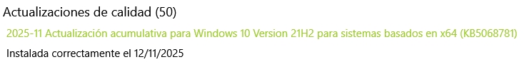 Y sin embargo yo no me he registrado en el programa de soporte extendido y ayer me da por mirar y se me estaba instalando la actualización acumulativa de este mes de noviembre automáticamente Oooh