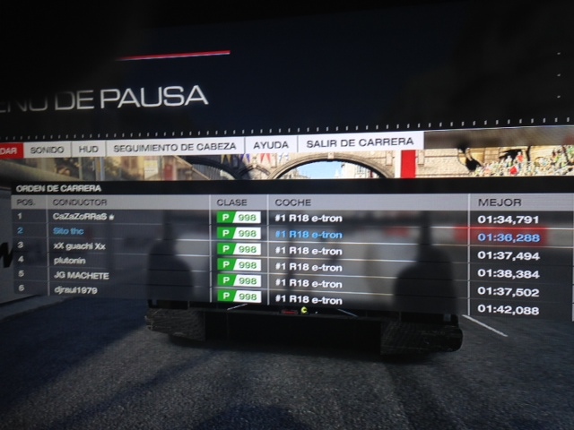 Al principio quería aguantar la posición a NGN Marco y al chico que quedó segundo (no recuerdo el nick) pero fallaba en cada curva y decidí que lo mejor era que me pasaran. Me quedo con saber agridulce porque el viernes estuve rodando en 2,03 constantes y en carrera ni me acerqué a ese tiempo. Una en 2.04 y la mayoría en 2.05 por cometer errores continuamente.