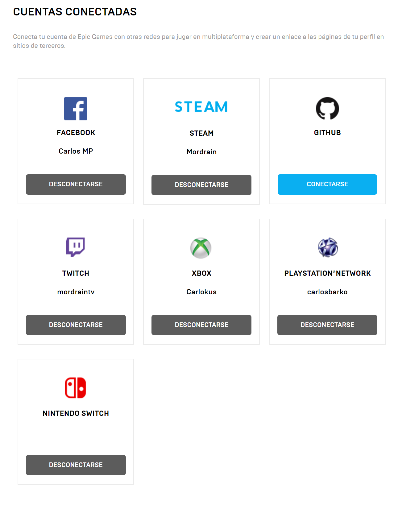 @fuji lo hice desde la consola, simplemente inicié el juego y la sesión con mi cuenta de Epic Games, es más, si accedes a la gestión de cuenta en la web, no aparece nada de vincular la cuenta a Switch, como por ejemplo sí aparece GITHUB.