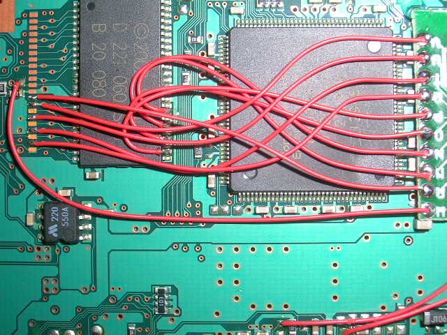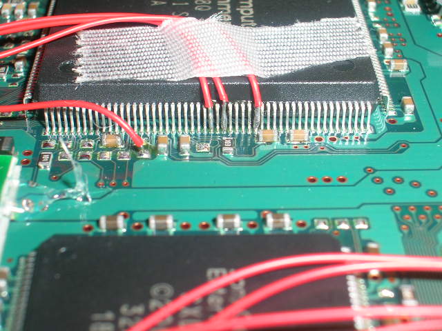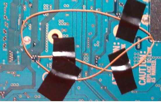 una vez hecho esto llevamos el cable directamente al chip, evitando cruzarlo con otros y pasarlo por zonas con interferencias. el cable NO HAY QUE PEGARLO A LA PLACA.
