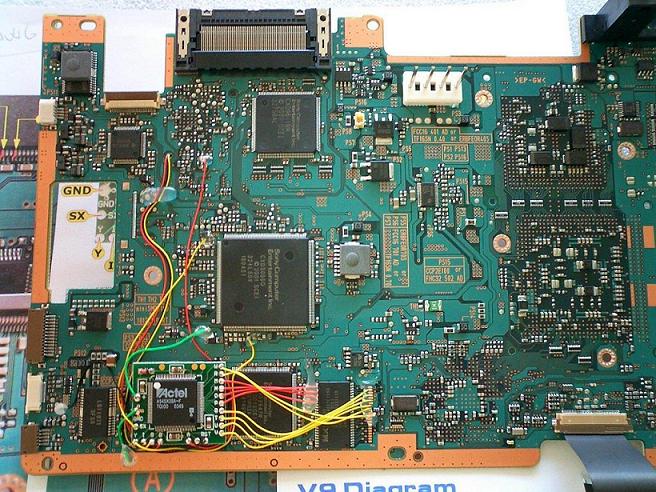 despues llevamos el cable al punto O del chip. ahi soldamos el blanco a el punto O y el negro a un punto de masa cercano.