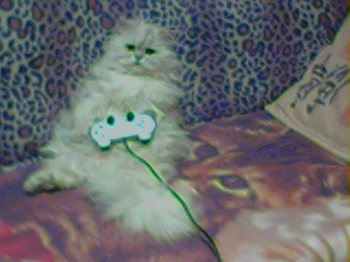 La Anécdota: llorar. Verídico. Lo coges y se pone a llorar porque has estado mucho tiempo fuera de casa, o porque está malo. SE cree persona, se enfada si le cambias la tele -que le encanta- y se sienta como las personas para ver la tele, si es con su peluche favorito, mejor. O bien agarrao al mando.