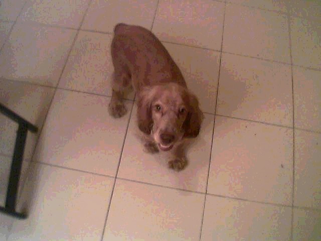 Aqui, a continuacion, cuando lo trajimos (decir que la madre la encontramos un amigo y yo y la llevamos a un sitio, donde quedo preñada y tuvo una camada... mi padre accedio a quedarnos con uno y nos quedamos con este (como dice mi madre) porque hace juego con los muebles del salon