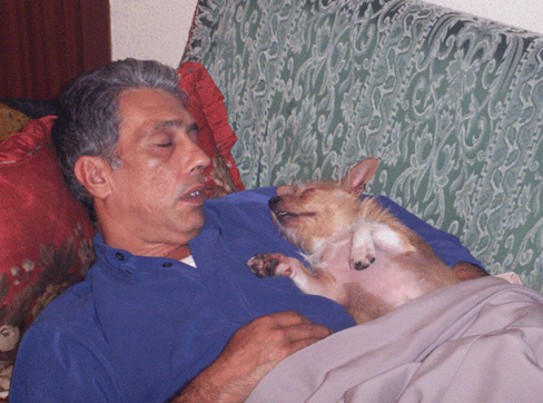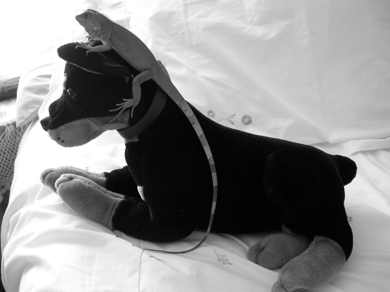 No, en serio, es muy mono y divertido... algo agresivo porque tiene una mania de morder bestial... pero en el fondo lo quiero mas que a nada