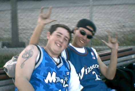 Pos aki tengo una foto mia kon mi kolega ruben (tb llamado pesadilla, xk kuando t xokas kontra el lo flipas) en mi epoka rapera, estabamos aciendo un deskansillo d un partido de baloncesto, ahi todavia estaba en mi epoka "sana", ahora toi tol dia y