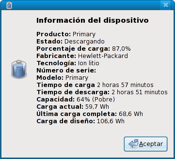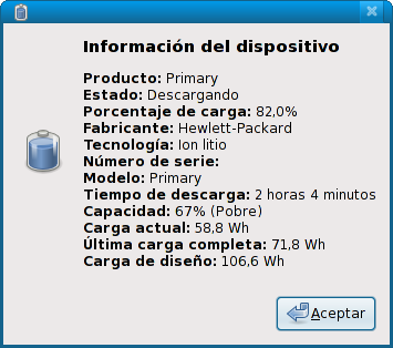 Ayer le hice el calibrado de la bios, que era cargarla entera y vaciarla ENTERA, según parece se hace esto para que las mediciones de capacidad sean correctas.