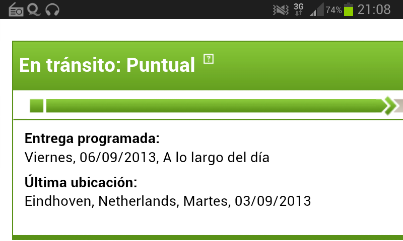 Por otro lado ahora NO ME APACE FECHA DE ENTREGA PROGRAMADA me aparece esto en el traking: