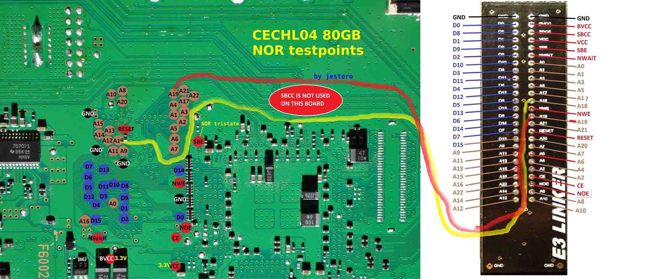 Tengo una CECH-2104 y hace bastante tiempo que se me estropeó el lector. Estaba en OFW 4.11. Me compré el E3 NOR flasher y he seguido el magnífico tutorial. Como con el clip me daba error, soldé todos los puntos del E3 linker (no sé si se tenían que soldar todos o no) y parece que funcionó.