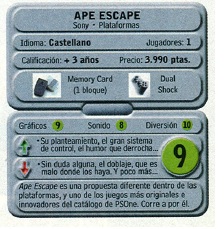 Ape Escape es uno de los juegos más representativos de las plataformas 3D para PSX, pero que presentó una mecánica diferente a la usada por el resto de juego de la generación: Tenemos que cazar unos monos "inteligentes" que por motivos poco importantes han acabado en diversos lugares temporales para cambiar la historia y que los humanos dejemos de ser los dueños del mundo. La historia no tiene grandes alardes ni giros de guión y es totalmente prescindible, además en español los diálogos suenan super forzados como si los hubiese grabado el robot del traductor de google. Pero dicha mecánica le da al juego un toque de originalidad y diferenciación que no encontraremos en ningún otro juego de la generación (o eso creo), así mientras otros grandes pesos pesados como Crash, Spryro, Mario 64 o Banjo basaban sus fases en la localización estática de un determinado objeto aquí se va un paso más allá y aparte de localizar a los peludos monos tendremos que lograr sorprenderlos para que no escapen de nosotros o lo que sería todavía peor decidan atacarnos (que va desde tirar piedras hasta usar metralletas y misiles).