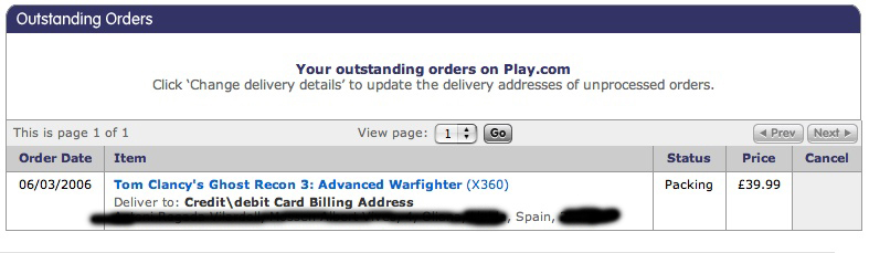 Your order for Tom Clancy's Ghost Recon 3: Advanced Warfighter has been posted.