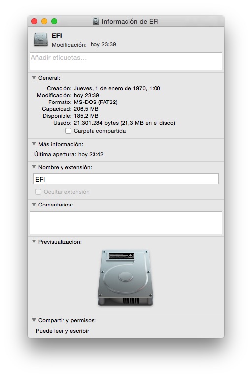 La parte de formatear la partición EFS en fat32, luego montarla y copiar los archivos de clover no la entiendo bien, es decir, yo cuando instalé el sistema formatee completamente el disco duro en osx journaled, no hice particiones, e instale tal cual, a ver si podeis aclararmelo.
