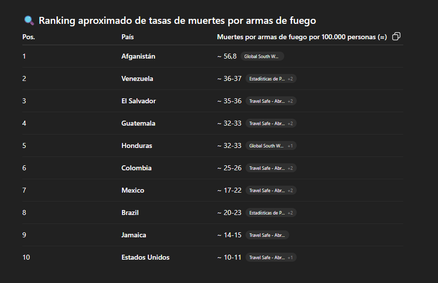 Mi punto era que te pueden matar igual con armas de fuego en EEUU como en cualquier otro pais, sean legales o no. De hecho las muertes como tal, son mayores en otros paises. Pero era simplemente un ejemplo que a funcionado tambien un poco a modo de curiosidad por que, viendo esto... Si lo pensais, es preferible que os disparen en EEUU que en cualquier otro paises, dado que a pesar de que hay bastantes mas tiroteos, tus posiblidades de sobrevivir tambien son bastante mas altas![]()