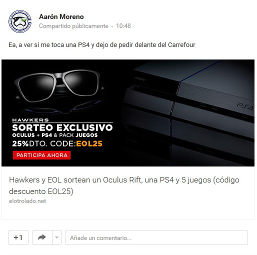 Hawkers y EOL sortean un Oculus Rift, una PS4 y 5 juegos (código descuento EOL25) (Actualizado)