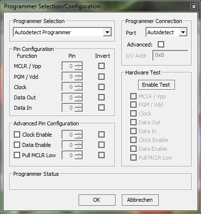 frank101 escribió:Hola, para los que el winpic no va, prueba con el PICPgm programmer. A mi el winpic tampoco me iba el programador, siempre me salia el error "El Hardware no responde". Sin embargo con este otro programa si que me lo detectaba. Hay que ir a hardware -> Hardware Selection/Configuration... y en "Programmer Selection" y en "Programmer Connection" hay que seleccionar Autodetect (1º imagen). Si todo esta bien configurado deberas ver una ventana como en la 2º imagen.