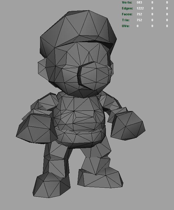 752 polígonos con la gorra. Kaz Emanuar dice que ha reducido el modelo en 120 polígonos con sus modificaciones (o sea, que lo ha dejado en 632 polígonos). Ahora falta saber si el de Nintendo DS es aún más ligero.