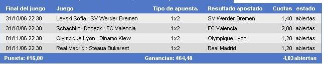 Saludos y ..... a por los bookies