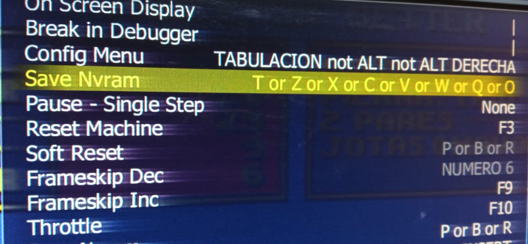 Hola ,, buenos dias ,, ante todo amigo cuclis mil gracias por su respuesta,, voy a tratar de expliacarte bien,, para que este juego guarde el archivo nvram hay que salir del juego,, osea precionando el reset, lo que busco es poder hacer una compilacion y activar el "SAVE NVRAM" para asi cuando esten jugando se vallan guardando automaticamente los nvram,lo puedes ver en la imagen que subo , esto por si hay apagones inesperados no se pierda informacion en el juego ,,gracias por su valiosa colaboracion,,
